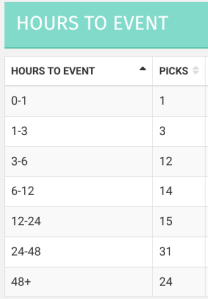 El 100% de los picks son antes del partido y más del 50% se publicaron al menos 24 horas antes. Algunos de los tipsters mas rentables en Blogabet publican la mayoría de sus picks en directo, cuando el partido ya se está jugando. Es cierto que es una estrategia muy rentable pero dificulta muchísimo que los suscriptores puedan hacer las apuestas a tiempo. Tenlo en cuenta.